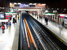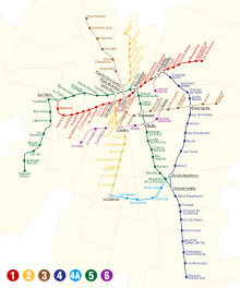 | Top left: The Cerro Santa Lucia, Top right: View of the area called Sanhattan, second left: The Palace of La Moneda, second right: The statue of the Virgin Mary in the Cerro San Cristóbal, third left: the Tower Entel, third highest middle: the National Museum of Fine Arts, third bottom half: the National Library, Third right: La Torre Telefónica, bottom left: the Metropolitan Cathedral of Santiago, and bottom right: Hernando de Magallanes Station, Metro de Santiago. | |