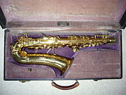 The saxophone (also referred to as the sax) is a conical- bored transposing musical instrument that is a member of the woodwind family. Saxophones are usually made of brass and played with a single-reed mouthpiece similar to that of the clarinet. The saxophone was invented by the Belgian Adolphe Sax in 1841. He wanted to create an instrument that would both be the most powerful and vocal of the woodwinds and the most adaptive of the brass, which would fill the then vacant middle ground between the two sections. He patented the sax in 1846 in two groups of seven instruments each. Each series consisted of instruments of various sizes in alternating transposition. The series pitched in B♭ and E♭, designed for military bands, has proved extremely popular and most saxophones encountered today are from this series. A few saxophones remain from the less popular orchestral series pitched in C and F.
