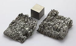 The production of metallic scandium is in the order of 10 kg per year. The oxide is converted to scandium fluoride and reduced with metallic calcium.