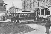 The first streetcars appeared in 1889 and were instrumental in the creation of a relatively well-defined downtown and strong neighborhoods at the end of their lines. The advent of the automobile sounded the death knell for rail in Seattle. Tacoma–Seattle railway service ended in 1929 and the Everett–Seattle service came to an end in 1939, replaced by inexpensive automobiles running on the recently developed highway system. Rails on city streets were paved over or removed, and the arrival of trolleybuses brought the end of streetcars in Seattle in 1941. This left an extensive network of privately owned buses (later public) as the only mass transit within the city and throughout the region.