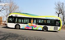 "Peanut Bus", an electric bus, heading to N Seoul Tower at Mt. Namsan.