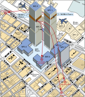 The September 11 attacks (also referred to as September 11, September 11th, or 9/11) were a series of four coordinated terrorist attacks launched by the Islamist terrorist group al-Qaeda upon the United States in New York City and the Washington, D.C. areas on September 11, 2001. On that Tuesday morning, 19 al-Qaeda terrorists hijacked four passenger jets, intending to fly them in suicide attacks into targeted buildings. Two of those planes, American Airlines Flight 11 and United Airlines Flight 175, were crashed into the North and South towers, respectively, of the World Trade Centre complex in New York City. Both towers collapsed within two hours and falling debris, combined with fires that the debris initiated in several surrounding buildings, led to the partial or complete collapse of all the other buildings in the World Trade Centre complex, also causing major damage to ten other large structures in the immediate area of the complex. A third plane, American Airlines Flight 77, was crashed into the Pentagon (the headquarters of the United States Department of Defense), leading to a partial collapse in its western side. The fourth plane, United Airlines Flight 93, was targeted at the United States Capitol in Washington, D.C., but crashed into a field near Shanksville, Pennsylvania after its passengers tried to overcome the hijackers. Almost 3,000 people died in the attacks, including all 227 civilians and 19 hijackers aboard the four planes.