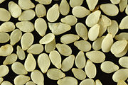 Sesame is grown primarily for its oil-rich seeds, which come in a variety of colors, from cream-white to charcoal-black. In general, the paler varieties of sesame seem to be more valued in the West and Middle East, while the black varieties are prized in the Far East. The small sesame seed is used whole in cooking for its rich nutty flavour (although such heating damages their healthful poly-unsaturated fats), and also yields sesame oil.
