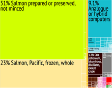 Graphical depiction of Seychelles's product exports in 28 colour-coded categories.