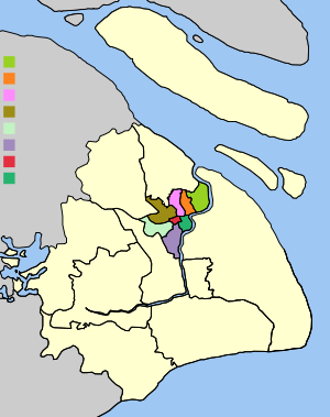 Shanghai in the 1930s, with the Shanghai International Settlement and Shanghai French Concession.