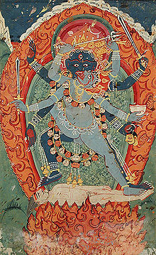 - Bhairava, Bhairava (Sanskrit: भैरव, "Terrible" or "Frightful",[1]), sometimes known as Bhairo or Bhairon or Bhairadya or Bheruji (In Rajasthan), is the fierce manifestation of Shiva associated with annihilation. He is one of the most important deities of Rajasthan and Nepal, sacred to Hindus and Buddhists alike. When depicted as Kala Bhairava, Bhairava is shown carrying the decapitated head of Brahma.