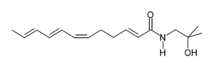 Sichuan pepper has a unique aroma and flavour that is not hot or pungent like black or white pepper, or chili peppers, but has slight lemony overtones and creates in the mouth a kind of tingly numbness (caused by its 3% of hydroxy-alpha-sanshool) that sets the stage for these hot spices. Recipes often suggest lightly toasting and then crushing the tiny seedpods before adding them to food. Only the husks are used; the seeds are discarded or ignored. It is generally added at the last moment. Star anise and ginger are often used with it and it figures prominently in spicy Sichuan cuisine. It has an alkaline pH and a numbing effect on the lips when eaten in larger doses. Ma la (Chinese: 麻辣; pinyin: málà; literally "numbing and spicy"), a flavor common in Sichuan cooking, is a combination of Sichuan pepper and chili pepper.