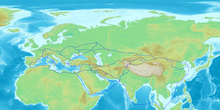 As it extends westwards from the ancient commercial centers of China, the overland, intercontinental Silk Road divides into the northern and southern routes by passing the Taklimakan Desert and Lop Nur.