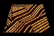 The atoms, molecules or ions which make up a solid may be arranged in an orderly repeating pattern, or irregularly. Materials whose constituents are arranged in a regular pattern are known as crystals. In some cases, the regular ordering can continue unbroken over a large scale, for example diamonds, where each diamond is a single crystal. Solid objects that are large enough to see and handle are rarely composed of a single crystal, but instead are made of a large number of single crystals, known as crystallites, whose size can vary from a few nanometers to several meters. Such materials are called polycrystalline. Almost all common metals, and many ceramics, are polycrystalline.
