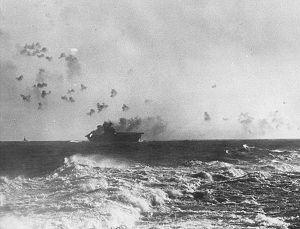 The aircraft carrier USS Enterprise (CV-6) under aerial attack during the Battle of the Eastern Solomons.