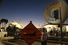 After low level flyovers above NASA and civic landmarks across the country and in California, it was delivered to Los Angeles International Airport (LAX) on September 21, 2012. The orbiter was slowly and carefully transported through the streets of Los Angeles and Inglewood three weeks later, from October 11-14 along La Tijera, Manchester, Crenshaw, and Martin Luther King, Jr. Boulevards to her final destination at the California Science Centre in Exposition Park.