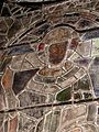 Detail from a 19th or 20th century window in Eyneburg, Belgium, showing detailed polychrome painting of face.