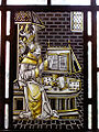Thomas Becket window from Canterbury showing the pot metal and painted glass, lead H-sectioned cames, modern steel rods and copper wire attachments