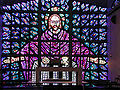 Mid 20th-c. window showing a continuation of ancient and 19th-c. methods applied to a modern historical subject. Florence Nightingale window at St Peters, Derby, removed from the Derbyshire Royal Infirmary