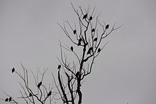 The starlings are generally a highly social family. Most species associate in flocks of varying sizes throughout the year. A flock of starlings is called a murmuration. These flocks may include other species of starlings and sometimes species from other families. This sociality is particularly evident in the their roosting behaviour; in the non-breeding season some roosts can number in the thousands of birds.