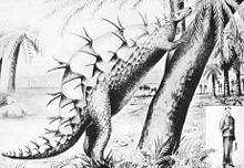 - By 1891, Marsh published a more familiar view of Stegosaurus, with a single row of plates. This was dropped fairly early on (apparently because it was poorly understood how the plates were embedded in the skin and it was thought that they would overlap too much in this arrangement). It was revived, in somewhat modified form, in the 1980s, by an artist (Stephen Czerkas), based on the arrangement of iguana dorsal spines.