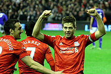 Gerrard, who has spent his entire career at Anfield, made his début in 1998 and cemented his place in the first team in 2000, succeeding Sami Hyypiä as team captain in 2003. His honours include two FA Cups, three League Cups, two Community Shields, one Champions League, one UEFA Cup, and two Super Cups.