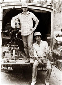 A famous example of Spielberg working with the same professionals is his long-time collaboration with John Williams and the use of his musical scores in all of his films since The Sugarland Express (except The Colour Purple and Twilight Zone: The Movie). One of Spielberg's trademarks is his use of music by John Williams to add to the visual impact of his scenes and to try and create a lasting picture and sound of the film in the memories of the film audience. These visual scenes often uses images of the sun (e.g. Empire of the Sun, Saving Private Ryan, the final scene of Jurassic Park, and the end credits of Indiana Jones and the Last Crusade (where they ride into the sunset), of which the last two feature a Williams score at that end scene. Spielberg is a contemporary of filmmakers George Lucas, Francis Ford Coppola, Martin Scorsese, John Milius, and Brian De Palma, collectively known as the " Movie Brats". Aside from his principal role as a director, Spielberg has acted as a producer for a considerable number of films, including early hits for Joe Dante and Robert Zemeckis.