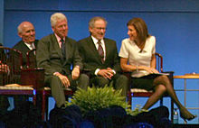 - Spielberg usually supports U.S. Democratic Party candidates. He has donated over $800,000 to the Democratic party and its nominees. He has been a close friend of former President Bill Clinton and worked with the President for the USA Millennium celebrations. He directed an 18-minute film for the project, scored by John Williams and entitled The American Journey. It was shown at America's Millennium Gala on December 31, 1999, in the National Mall at the Reflecting Pool at the base of the Lincoln Memorial in Washington, D.C.