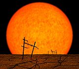 Solar energy can be harnessed by a variety of natural and synthetic processes—photosynthesis by plants captures the energy of sunlight and converts it to chemical form (oxygen and reduced carbon compounds), while direct heating or electrical conversion by solar cells are used by solar power equipment to generate electricity or to do other useful work, sometimes employing concentrating solar power (that it is measured in suns). The energy stored in petroleum and other fossil fuels was originally converted from sunlight by photosynthesis in the distant past.