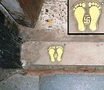 The bronze frontspiece of a ritual pre-Christian (c. 350-50 BC) shield found in the River Thames near Battersea Bridge (hence " Battersea Shield") is embossed with 27 swastikas in bronze and red enamel. An Ogham stone found in Anglish, Co Kerry, Ireland ( CIIC 141) was modified into an early Christian gravestone, and was decorated with a cross pattée and two swastikas. The Book of Kells (ca. 800) contains swastika-shaped ornamentation. At the Northern edge of Ilkley Moor in West Yorkshire, there is a swastika-shaped pattern engraved in a stone known as the Swastika Stone. The figure in the foreground of the picture is a 20th century replica; the original carving can be seen a little farther away, at left of centre.