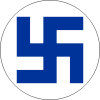 - a 45° black swastika outlined by thin white and black lines on a white disc (e.g., the German War Ensign);
