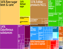 Graphical depiction of Swaziland's product exports in 28 colour-coded categories.