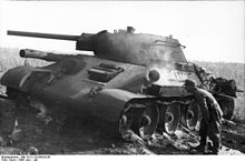 The T-34 was a Soviet medium tank produced from 1940 to 1958. When it first appeared on the battlefield in 1941, German tank generals von Kleist and Guderian called it "the deadliest tank in the world." It has often been described as the most effective, efficient and influential design of World War II, although its armour and armament were surpassed by later tanks of the era.