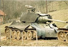 ![]() A T-34-85 tank on display at Musée des Blindés in April 2007. |