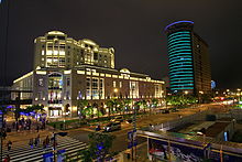The thriving shopping area around Taipei Main Station includes the Taipei Underground Market and the original Shin Kong Mitsukoshi department store at Shin Kong Life Tower. Other popular shopping destinations include the Zhongshan Metro Mall, Dihua Street, the Guang Hua Digital Plaza, and the Core Pacific City. The Miramar Entertainment Park is known for its large ferris wheel and IMAX theatre.
