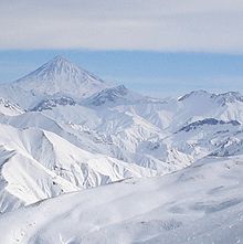 From the Tochal peak, one has a spectacular view of the Alborz range, including the 5,610 metres (18,406 ft) high Mount Damavand, a dormant volcano.