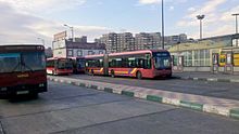 The trolleybus system opened in 1992, using a fleet of 65 articulated trolleybuses built by Skoda. This was the first trolleybus system in Iran and remains the country's only such system. In 2005, trolleybuses were operating on five routes, all starting at Meydan-e-Emam-Hoseyn ( Imam Hossein Square), near Imam Hossein station of the Tehran Metro Line 2. Two routes running northeastwards operate almost entirely in a segregated busway located in the middle of the wide carriageway (along Damavand Khiyaban), stopping only at purpose-built stops located about every 500 metres, effectively making these routes trolleybus- BRT (but they are not called such). The other three trolleybus routes run south from Meydan-e-Emam-Hoseyn and operate in mixed-traffic. Both route sections are served both by limited-stop services and local (making all stops) services. A 3.2-km extension from Meydan-e-Shush to Meydan-e-Rah Ahan and the railway station there opened in March 2010.