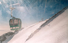Here, one must first ride the eight kilometre (five mile) long gondola lift which covers a huge vertical and is probably the longest line in the world. The 7th station has three slopes. The resort's longest slope is the south side U shaped slope which goes from the 7th station to 5th station. The other two slopes are located on the north side of the 7th station. Here, there are two parallel chair ski lifts that go up to 3,900 metres (12,795 ft) near Tochal's peak (at 4,000 m/13,125 ft), rising higher than the gondola 7th station. This altitude is higher than any of the European resorts.