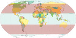 World map with temperate zones highlighted in red