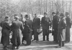 ![]() The main characters and others from The Castafiore Emerald In the centre is Tintin. |