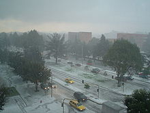 In North America, hail is most common in the area where Colorado, Nebraska, and Wyoming meet, known as "Hail Alley." Hail in this region occurs between the months of March and October during the afternoon and evening hours, with the bulk of the occurrences from May through September. Cheyenne, Wyoming is North America's most hail-prone city with an average of nine to ten hailstorms per season.