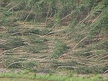 Downburst winds can produce numerous hazards to landscapes experiencing thunderstorms. Downburst winds are generally very powerful, and are often mistaken for wind speeds produced by tornadoes, due to the concentrated amount of force exerted by their straight-horizontal characteristic. Downburst winds can be hazardous to unstable, incomplete, or weakly constructed infrastructures and buildings. Agricultural crops, and other plants in nearby environments can be uprooted and damaged. Aircraft engaged in takeoff or landing can crash. Automobiles can be displaced by the force exerted by downburst winds. Downburst winds are usually formed in areas when high pressure air systems of downdrafts begin to sink and displace the air masses below it, due to their higher density. When these downdrafts reach the surface, they spread out and turn into the destructive straight-horizontal winds.