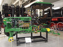 After graduating from the University of Wisconsin, Charles W. Hart and Charles H. Parr developed a two-cylinder gasoline engine and set up their business in Charles City, Iowa. In 1903, the firm built 15 "tractors", a term with Latin roots coined by Hart and Parr, and a combination of the words traction and power. Their 14,000-pound #3 is the oldest surviving internal combustion engine tractor in the United States, and is on display at the Smithsonian National Museum of American History in Washington D.C. The two-cylinder engine has a unique hit-and-miss firing cycle that produced 30 horsepower at the belt and 18 at the drawbar.