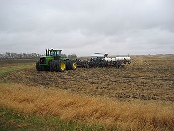 A tractor is an engineering vehicle specifically designed to deliver a high tractive effort (or torque) at slow speeds, for the purposes of hauling a trailer or machinery used in agriculture or construction. Most commonly, the term is used to describe a farm vehicle that provides the power and traction to mechanize agricultural tasks, especially (and originally) tillage, but nowadays a great variety of tasks. Agricultural implements may be towed behind or mounted on the tractor, and the tractor may also provide a source of power if the implement is mechanised.