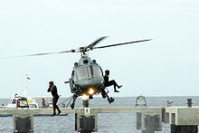 Trinidad and Tobago Coast Guard members during a practice exercise at Staubles Bay in Chaguaramas for the arrival of Prince Charles in 2008.