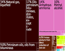 Graphical depiction of Trinidad and Tobago's product exports in 28 colour-coded categories.