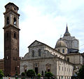 | A collage of Turin: in the top left is the Mole Antonelliana, followed by a view of the city under the snow, the Piazza Vittorio Veneto, the Royal Palace of Turin and the Museo del Risorgimento (Palazzo Carignano) | |||