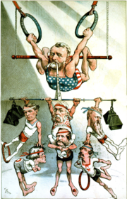 Puck, a Democratic magazine, in 1880 lampooned Grant's support of "rings" of corruption among his associates.