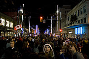 Vancouver has a vibrant nightlife scene, whether it be food and dining, or bars and nightclubs. The Granville Entertainment District has the city's highest concentration of bars and nightclubs with closing times of 3am, in addition to various after-hours clubs open til late morning on weekends. The street can attract large crowds on weekends and is closed to traffic on such nights. Gastown is also a popular area for nightlife with many upscale restaurants and nightclubs, as well as the Davie Village which is centre to the city's gay and lesbian LGBT community.