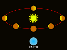 When the Italian physicist Galileo Galilei first observed the planet in the early 17th century, he found it showed phases like the Moon, varying from crescent to gibbous to full and vice versa. When Venus is furthest from the Sun in the sky, it shows a half-lit phase, and when it is closest to the Sun in the sky, it shows as a crescent or full phase. This could be possible only if Venus orbited the Sun, and this was among the first observations to clearly contradict the Ptolemaic geocentric model that the Solar System was concentric and centered on the Earth.