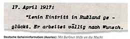 - Lenin was portrayed by Kenneth Cranham in the 1983 BBC miniseries Reilly: Ace of Spies.