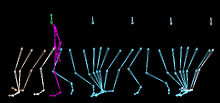 Computer simulation of a human walk cycle. In this model the head keeps the same level at all times, whereas the hip follows a sine curve.