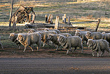Sheep walking along a road