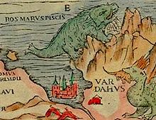 A walrus, labeled Ros marus piscis, is depicted in а 16th-century map of Scandinavia (the Carta Marina).