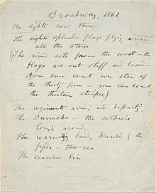 Walter "Walt" Whitman (May 31, 1819 – March 26, 1892) was an American poet, essayist and journalist. A humanist, he was a part of the transition between transcendentalism and realism, incorporating both views in his works. Whitman is among the most influential poets in the American canon, often called the father of free verse. His work was very controversial in its time, particularly his poetry collection Leaves of Grass, which was described as obscene for its overt sexuality.